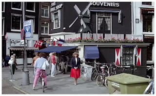 Ace vraagt Vicki waarom ze geen souvenirs van Amsterdam wil kopen. The Mill Shop (nu juwelier The Mill Diamonds), Rokin 123 en Grimnessesluis (Brug 202).